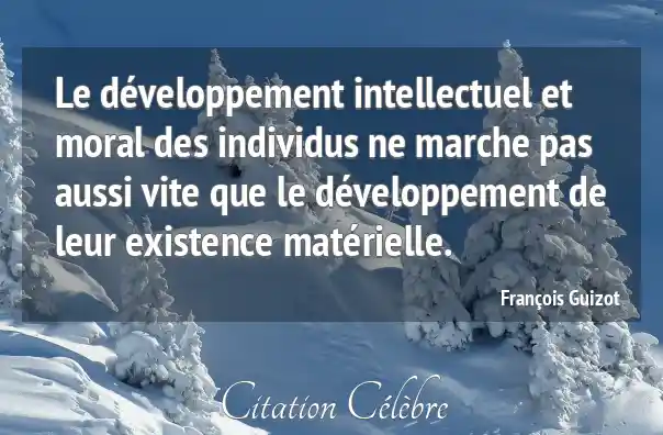 Le développement intellectuel et moral des individus ne marche pas aussi vite que le développement de leur existence matérielle.