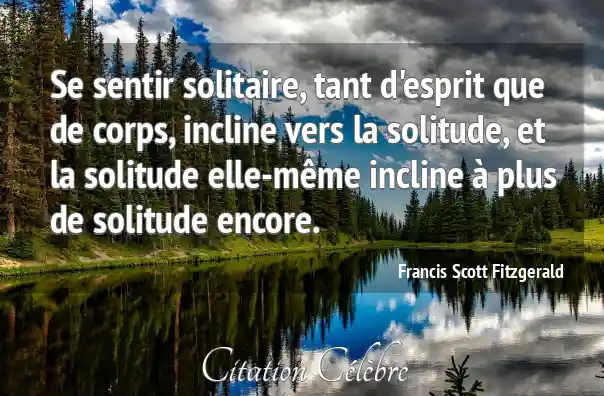 Se sentir solitaire, tant d'esprit que de corps, incline vers la solitude, et la solitude elle-même incline à plus de solitude encore.