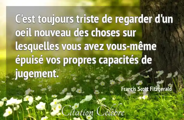 C'est toujours triste de regarder d'un oeil nouveau des choses sur lesquelles vous avez vous-même épuisé vos propres capacités de jugement.