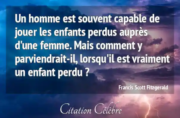 Un homme est souvent capable de jouer les enfants perdus auprès d'une femme. Mais comment y parviendrait-il, lorsqu'il est vraiment un enfant perdu ?