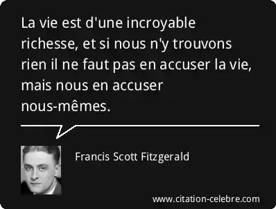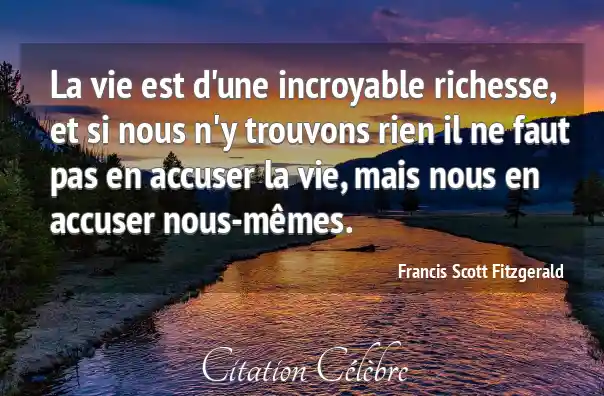 La vie est d'une incroyable richesse, et si nous n'y trouvons rien il ne faut pas en accuser la vie, mais nous en accuser nous-mêmes.