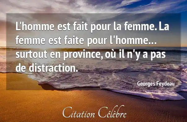 L'homme est fait pour la femme. La femme est faite pour l'homme... surtout en province, où il n'y a pas de distraction.