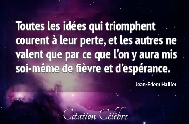 Toutes les idées qui triomphent courent à leur perte, et les autres ne valent que par ce que l'on y aura mis soi-même de fièvre et d'espérance.