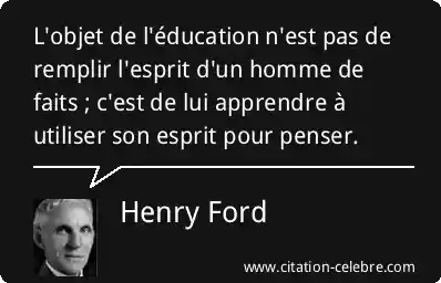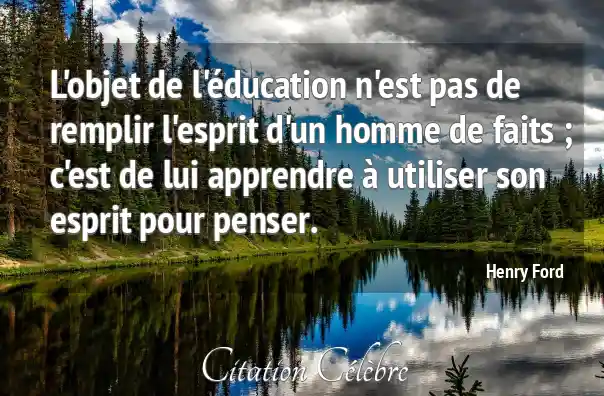 L'objet de l'éducation n'est pas de remplir l'esprit d'un homme de faits ; c'est de lui apprendre à utiliser son esprit pour penser.