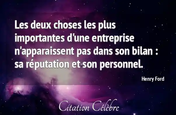 Les deux choses les plus importantes d'une entreprise n'apparaissent pas dans son bilan : sa réputation et son personnel.