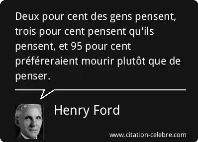 Deux pour cent des gens pensent, trois pour cent pensent qu'ils pensent, et 95 pour cent préféreraient mourir plutôt que de penser.
