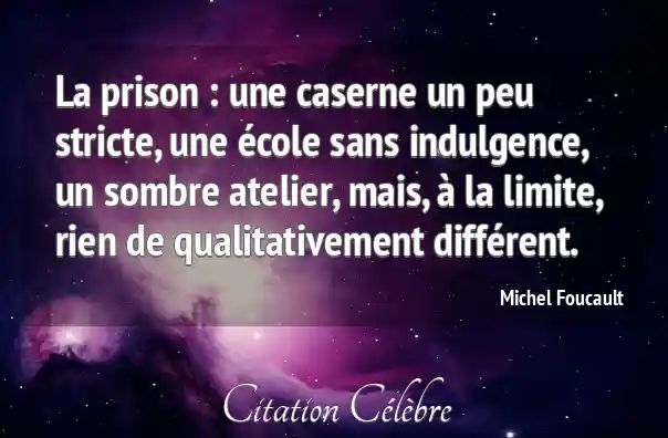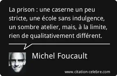 La prison : une caserne un peu stricte, une école sans indulgence, un sombre atelier, mais, à la limite, rien de qualitativement différent.