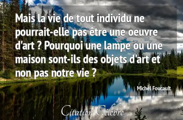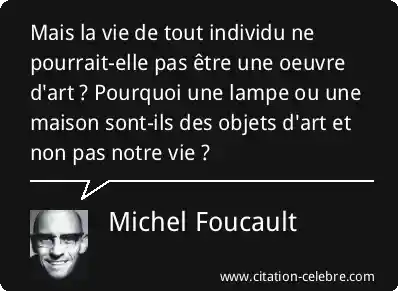 Mais la vie de tout individu ne pourrait-elle pas être une oeuvre d'art ? Pourquoi une lampe ou une maison sont-ils des objets d'art et non pas notre vie ?