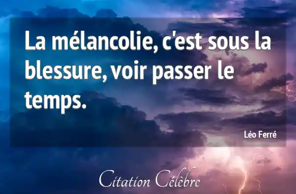 La mélancolie, c'est sous la blessure, voir passer le temps.