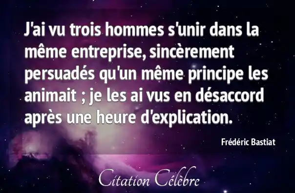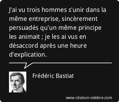 J'ai vu trois hommes s'unir dans la même entreprise, sincèrement persuadés qu'un même principe les animait ; je les ai vus en désaccord après une heure d'explication.