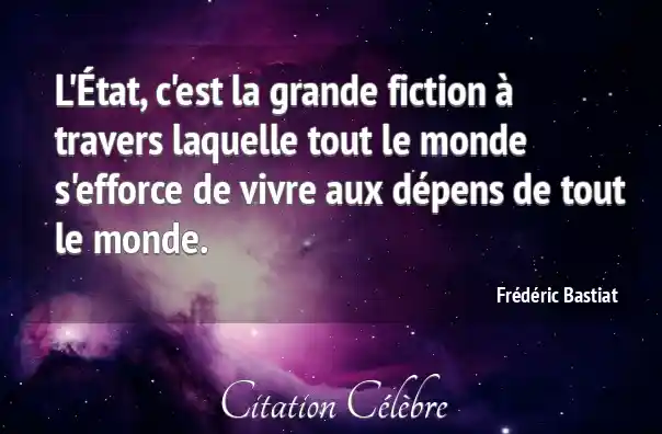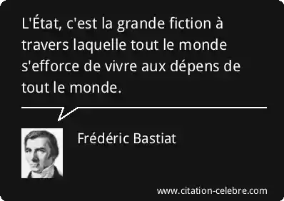 L'État, c'est la grande fiction à travers laquelle tout le monde s'efforce de vivre aux dépens de tout le monde.