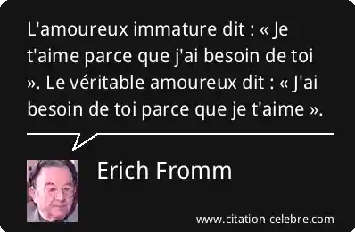 L'amoureux immature dit : « Je t'aime parce que j'ai besoin de toi ». Le véritable amoureux dit : « J'ai besoin de toi parce que je t'aime ».