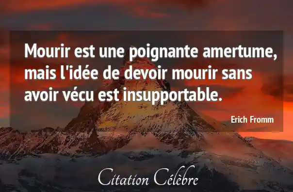 Mourir est une poignante amertume, mais l'idée de devoir mourir sans avoir vécu est insupportable.