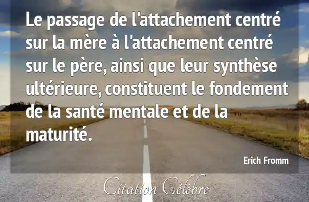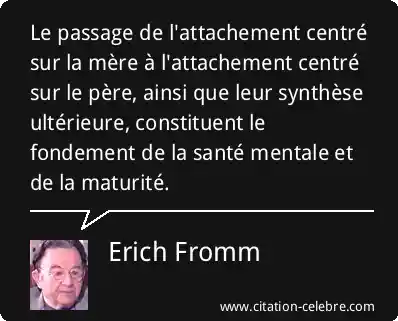 Le passage de l'attachement centré sur la mère à l'attachement centré sur le père, ainsi que leur synthèse ultérieure, constituent le fondement de la santé mentale et de la maturité.
