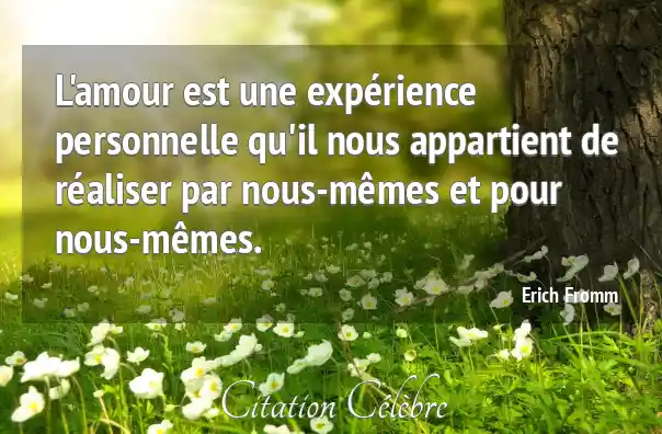 L'amour est une expérience personnelle qu'il nous appartient de réaliser par nous-mêmes et pour nous-mêmes.