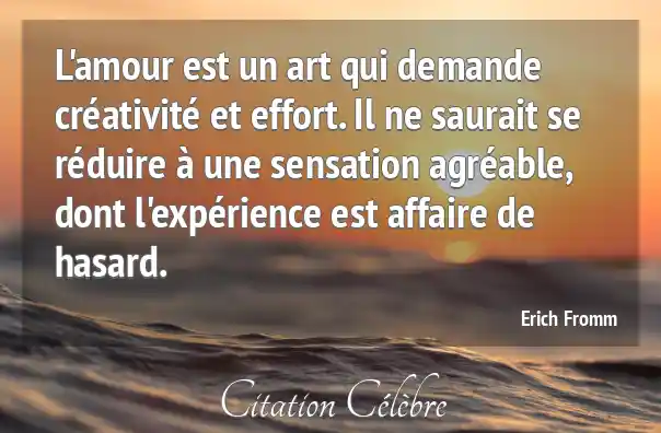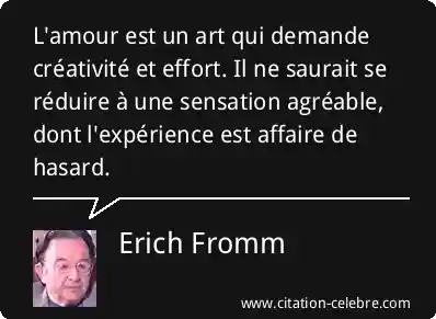 L'amour est un art qui demande créativité et effort. Il ne saurait se réduire à une sensation agréable, dont l'expérience est affaire de hasard.