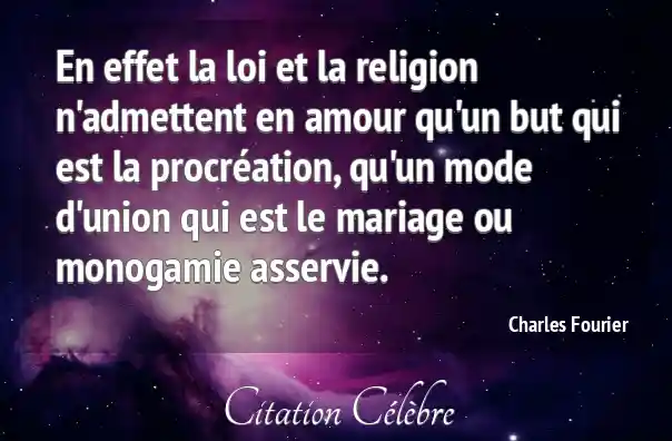 En effet la loi et la religion n'admettent en amour qu'un but qui est la procréation, qu'un mode d'union qui est le mariage ou monogamie asservie.
