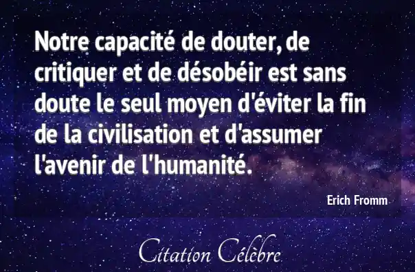 Notre capacité de douter, de critiquer et de désobéir est sans doute le seul moyen d'éviter la fin de la civilisation et d'assumer l'avenir de l'humanité.