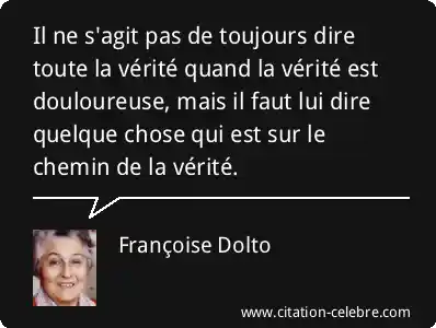 Il ne s'agit pas de toujours dire toute la vérité quand la vérité est douloureuse, mais il faut lui dire quelque chose qui est sur le chemin de la vérité.
