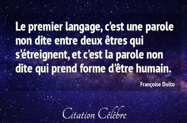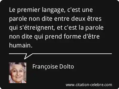 Le premier langage, c'est une parole non dite entre deux êtres qui s'étreignent, et c'est la parole non dite qui prend forme d'être humain.