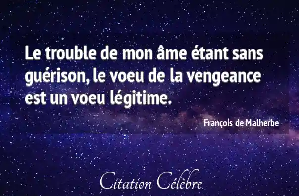 Le trouble de mon âme étant sans guérison, le voeu de la vengeance est un voeu légitime.