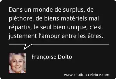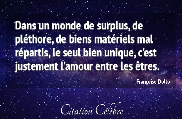 Dans un monde de surplus, de pléthore, de biens matériels mal répartis, le seul bien unique, c'est justement l'amour entre les êtres.