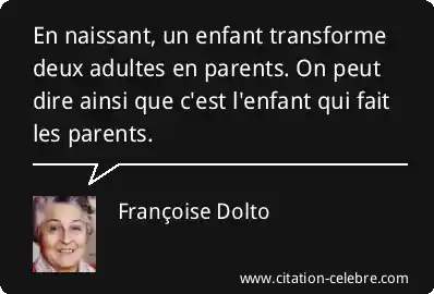 Citation Françoise Dolto enfant : En naissant, un enfant transforme deux adultes en parents. On...