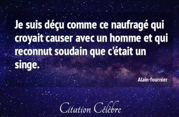Je suis déçu comme ce naufragé qui croyait causer avec un homme et qui reconnut soudain que c'était un singe.