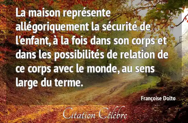La maison représente allégoriquement la sécurité de l'enfant, à la fois dans son corps et dans les possibilités de relation de ce corps avec le monde, au sens large du terme.