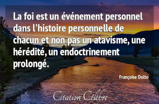 La foi est un événement personnel dans l'histoire personnelle de chacun et non pas un atavisme, une hérédité, un endoctrinement prolongé.