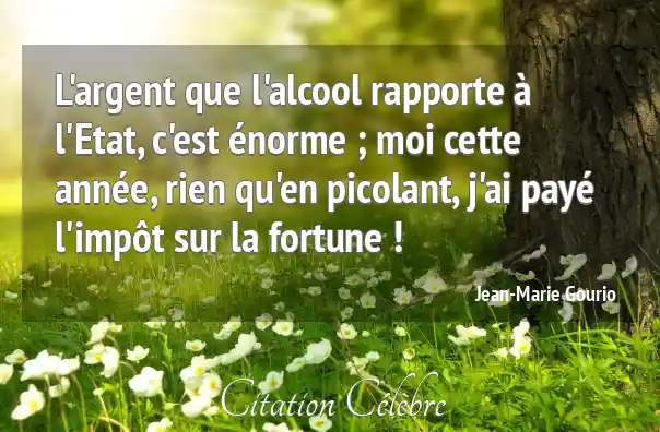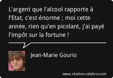 L'argent que l'alcool rapporte à l'Etat, c'est énorme ; moi cette année, rien qu'en picolant, j'ai payé l'impôt sur la fortune !