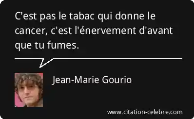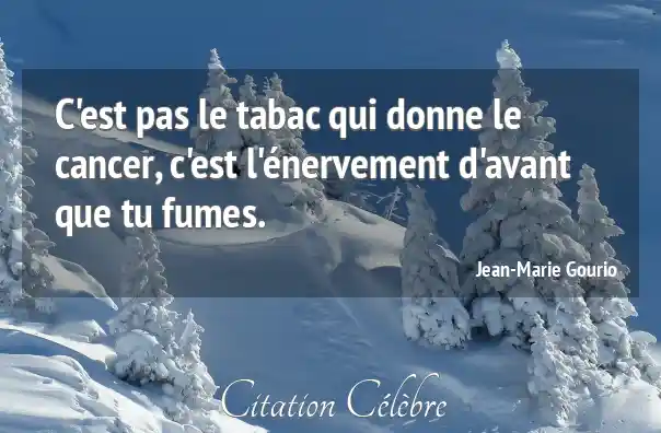 C'est pas le tabac qui donne le cancer, c'est l'énervement d'avant que tu fumes.