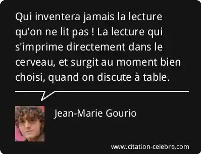 Qui inventera jamais la lecture qu'on ne lit pas ! La lecture qui s'imprime directement dans le cerveau, et surgit au moment bien choisi, quand on discute à table.