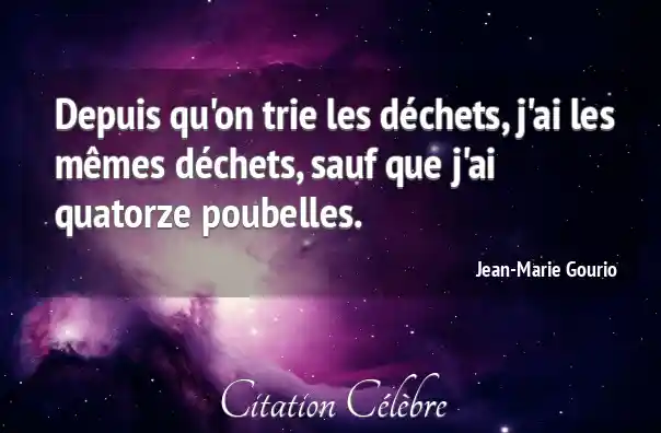 Depuis qu'on trie les déchets, j'ai les mêmes déchets, sauf que j'ai quatorze poubelles.