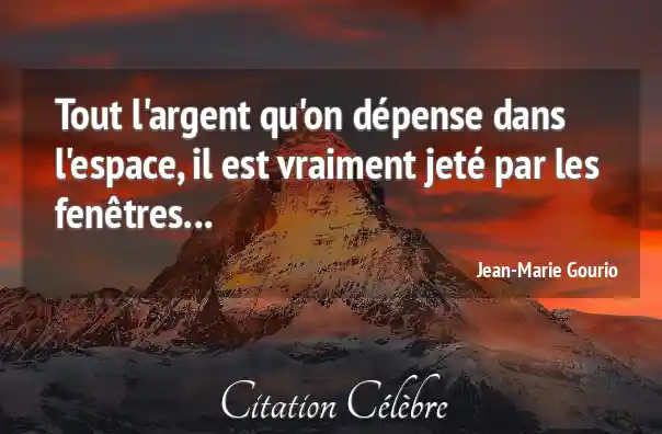 Tout l'argent qu'on dépense dans l'espace, il est vraiment jeté par les fenêtres...