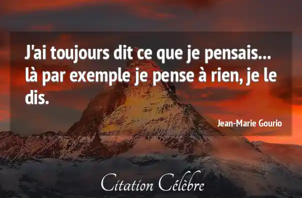J'ai toujours dit ce que je pensais... là par exemple je pense à rien, je le dis.