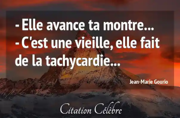 - Elle avance ta montre...- C'est une vieille, elle fait de la tachycardie...