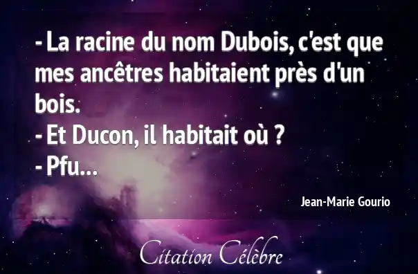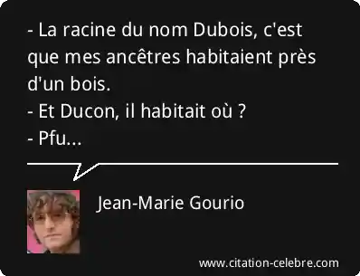 Citation Jean-Marie Gourio mes : - La racine du nom Dubois, c'est que mes ancêtres...