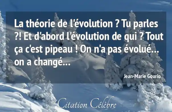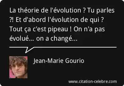La théorie de l'évolution ? Tu parles ?! Et d'abord l'évolution de qui ? Tout ça c'est pipeau ! On n'a pas évolué... on a changé...