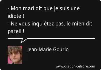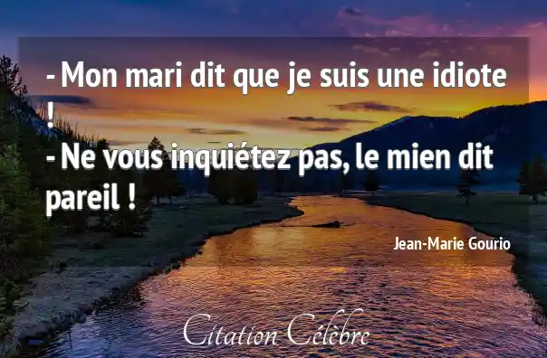 - Mon mari dit que je suis une idiote !- Ne vous inquiétez pas, le mien dit pareil !