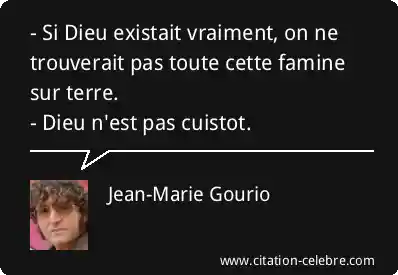 - Si Dieu existait vraiment, on ne trouverait pas toute cette famine sur terre.- Dieu n'est pas cuistot.