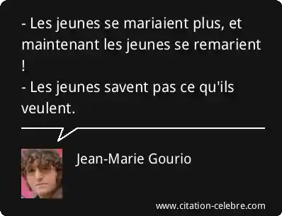 - Les jeunes se mariaient plus, et maintenant les jeunes se remarient !- Les jeunes savent pas ce qu'ils veulent.