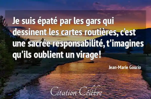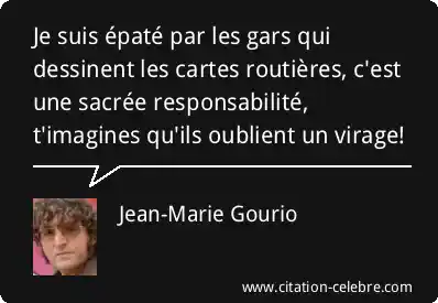 Je suis épaté par les gars qui dessinent les cartes routières, c'est une sacrée responsabilité, t'imagines qu'ils oublient un virage!