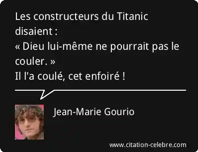 Les constructeurs du Titanic disaient : « Dieu lui-même ne pourrait pas le couler. » Il l'a coulé, cet enfoiré !