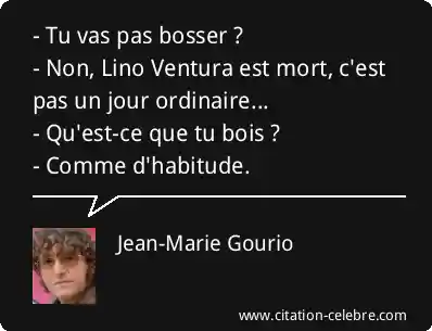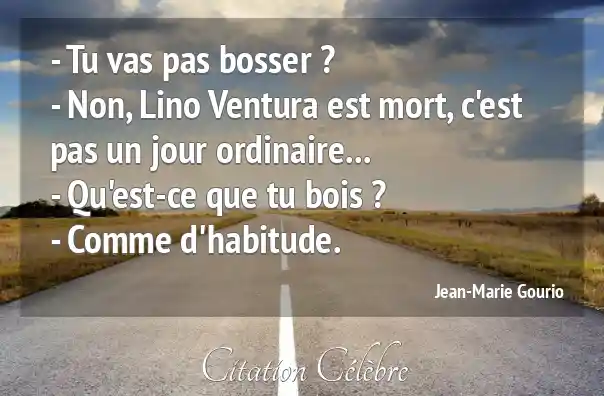 - Tu vas pas bosser ? - Non, Lino Ventura est mort, c'est pas un jour ordinaire...- Qu'est-ce que tu bois ? - Comme d'habitude.