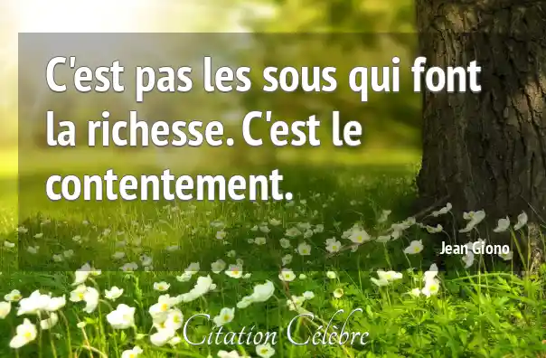 C'est pas les sous qui font la richesse. C'est le contentement.