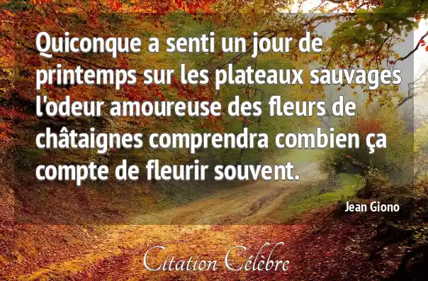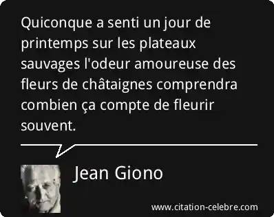 Quiconque a senti un jour de printemps sur les plateaux sauvages l'odeur amoureuse des fleurs de châtaignes comprendra combien ça compte de fleurir souvent.