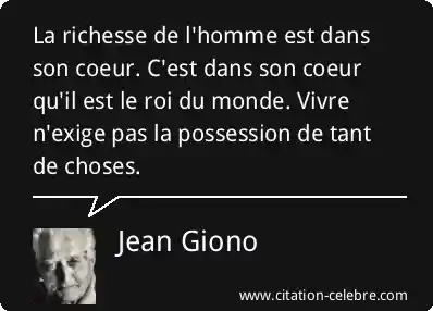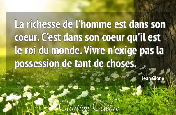 La richesse de l'homme est dans son coeur. C'est dans son coeur qu'il est le roi du monde. Vivre n'exige pas la possession de tant de choses.
