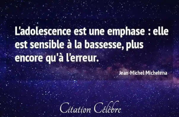 L'adolescence est une emphase : elle est sensible à la bassesse, plus encore qu'à l'erreur.