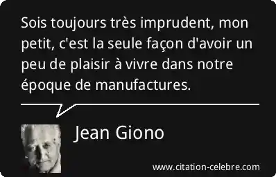 Sois toujours très imprudent, mon petit, c'est la seule façon d'avoir un peu de plaisir à vivre dans notre époque de manufactures.